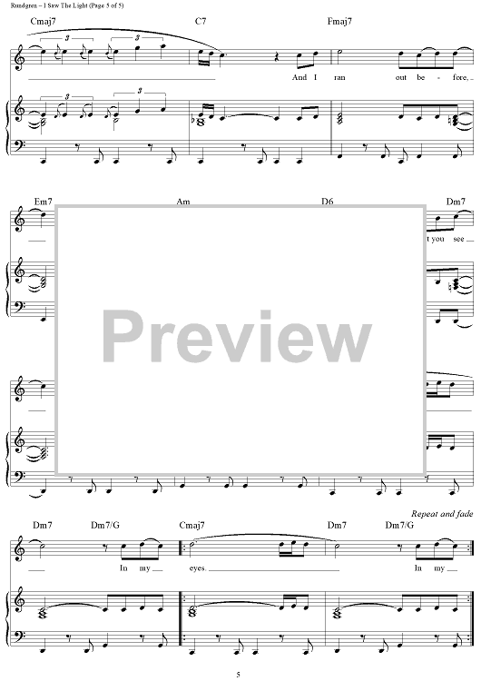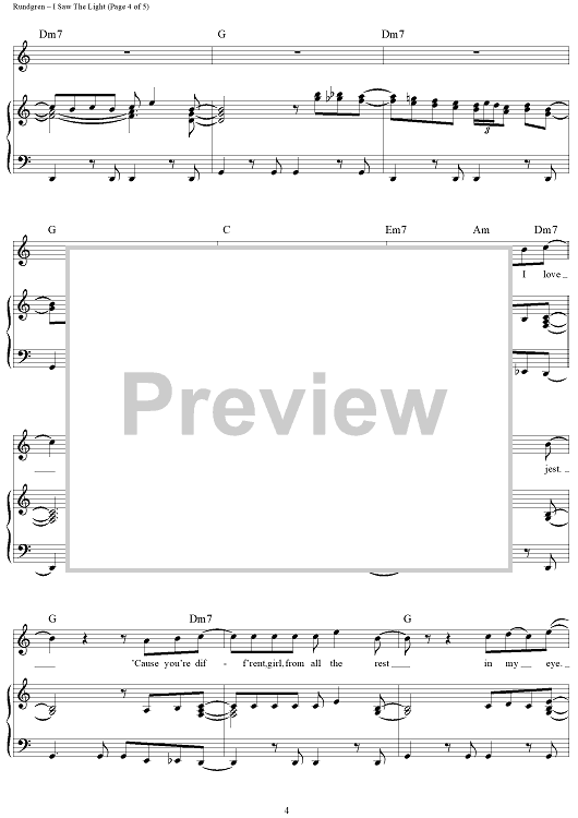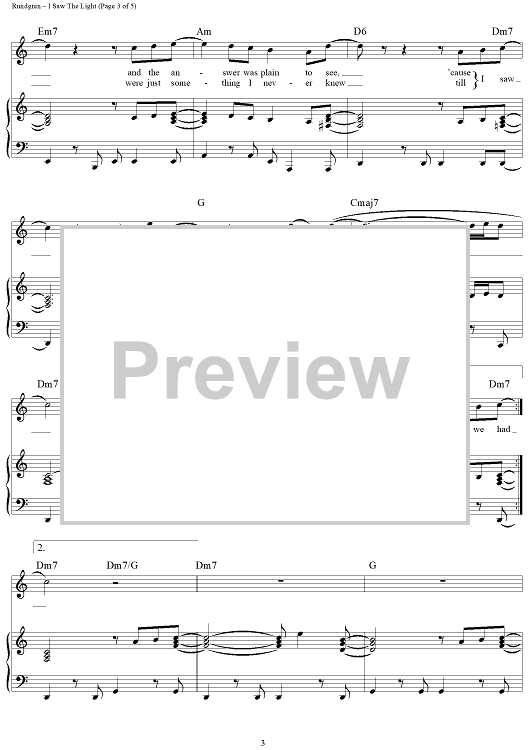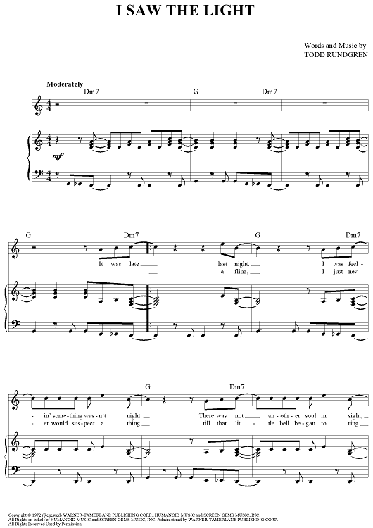 Digital Sheet Music for I Saw The Light by Todd Rundgren scored for Piano/Vocal/Chords; id:459884