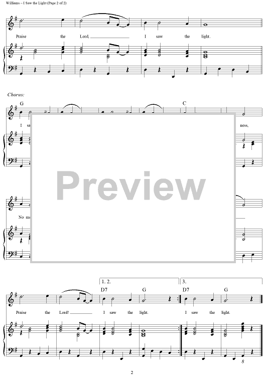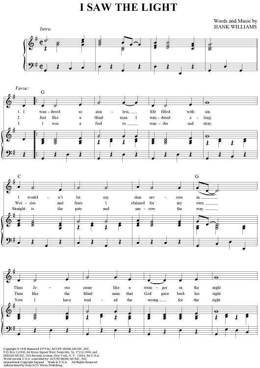Digital Sheet Music for I Saw the Light by Hank Williams scored for Piano/Vocal/Chords; id:95610