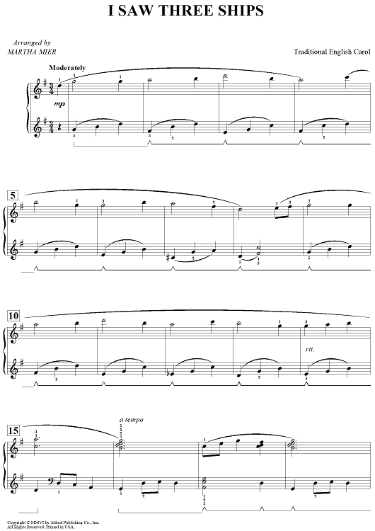 Digital Sheet Music for I Saw Three Ships by Traditional English Carol, Martha Mier scored for Piano; id:463562