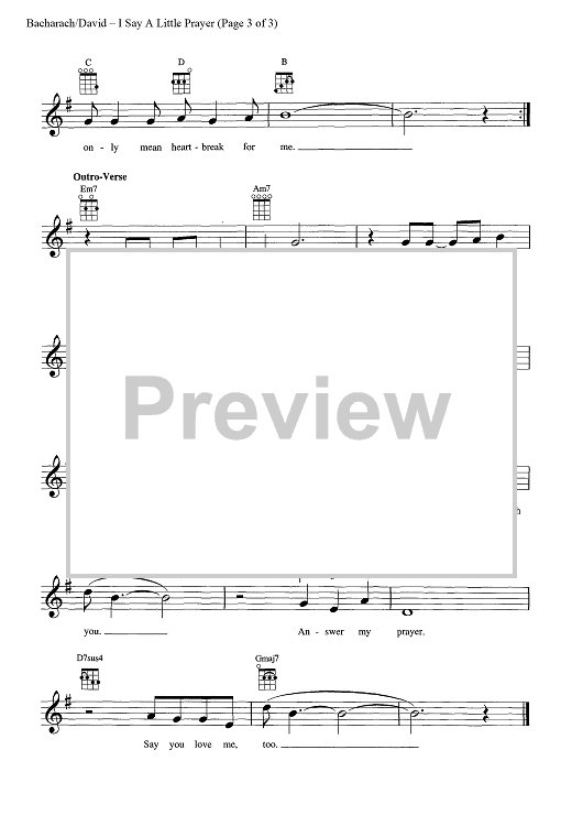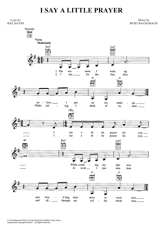 Digital Sheet Music for I Say a Little Prayer by Hal David, Burt Bacharach, Dionne Warwick scored for Ukulele/Vocal; id:449179