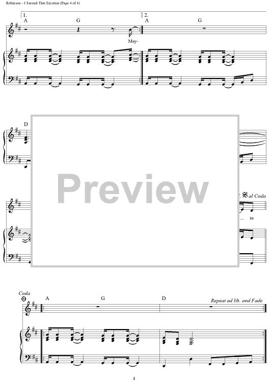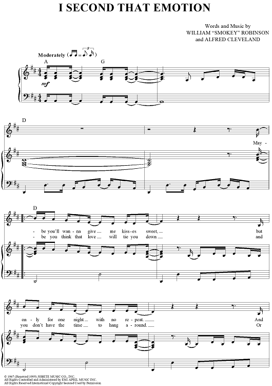 Digital Sheet Music for I Second That Emotion by Smokey Robinson, Al Cleveland, The Miracles scored for Piano/Vocal/Chords; id:370522