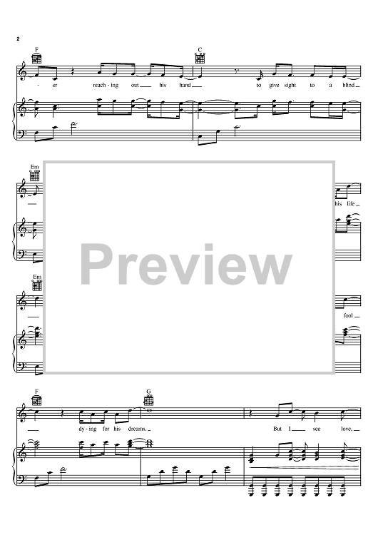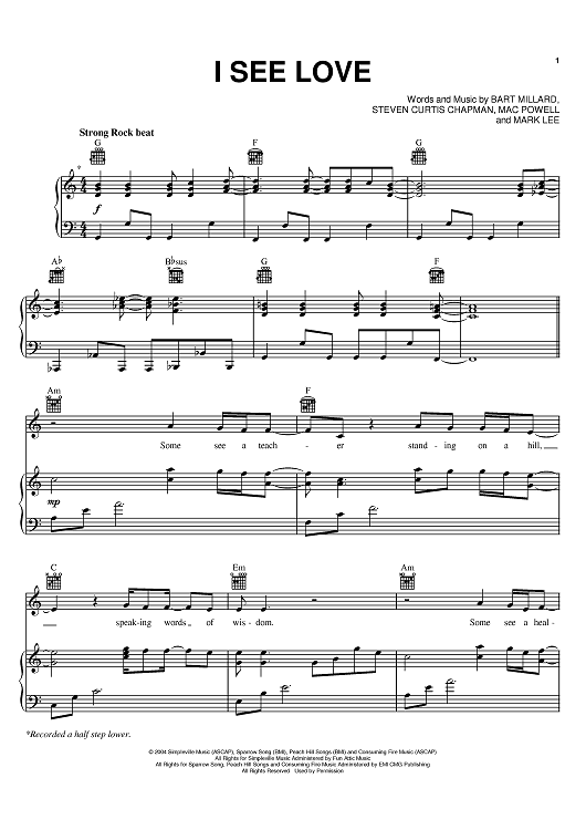 Digital Sheet Music for I See Love by Steven Curtis Chapman, Third Day, Mac Powell, Mark David Lee, MercyMe, Bart Millard scored for Piano/Vocal/Chords; id:395014