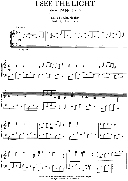 "I See The Light - from Tangled" Sheet Music by Alan Menken