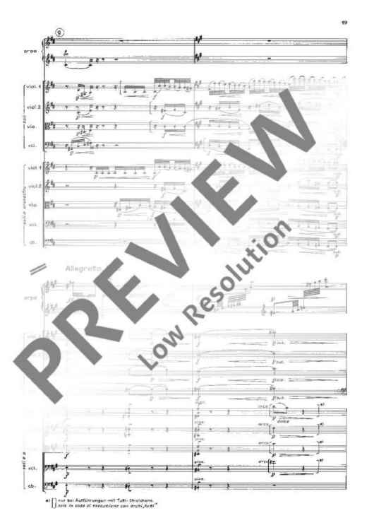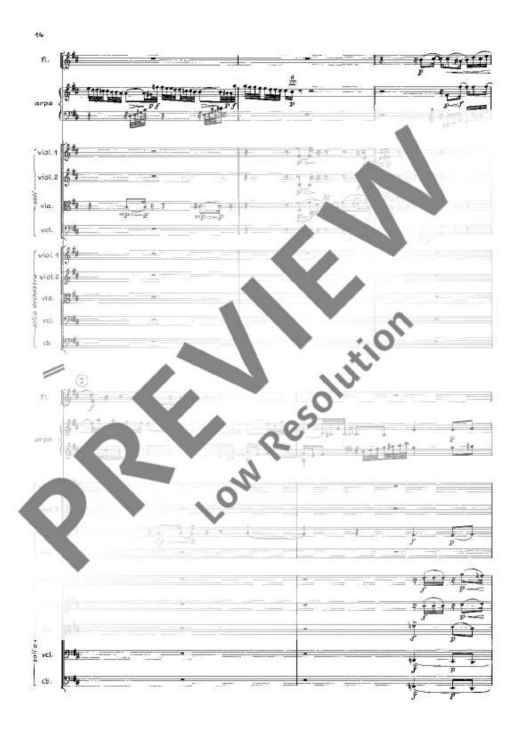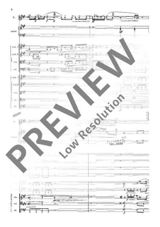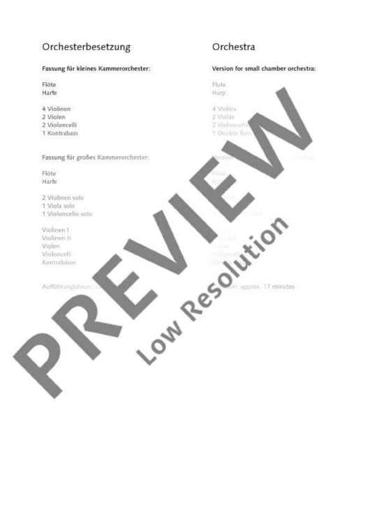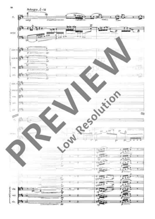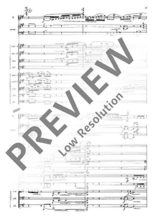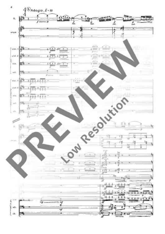I originally wrote this piece as a piéce d'occasion for the Accademia Filarmonica Romana, to complement the Mozart Concerto for flute, harp and strings. Retaining the note values of the original with exactitude, I have to set C. P. E. Bach's Fantasy-Sonata for piano and violin of 1787 for solo flute, harp and strings. I was my purpose to project the extremely interesting and expressive harmonic material of this composition into a larger instrumental apparatus and thereby to make its future-oriented harmonic structures more manifest and plastic. The strings can be presented in two different forms: either as a string quartet and a string quintet, or as string quartet and tutti strings. As will be seen, I have also attempted to loosen up and set in a concertante manner the sound of the strings in the spirit of early classic chamber music. - Hans Werner Henze
