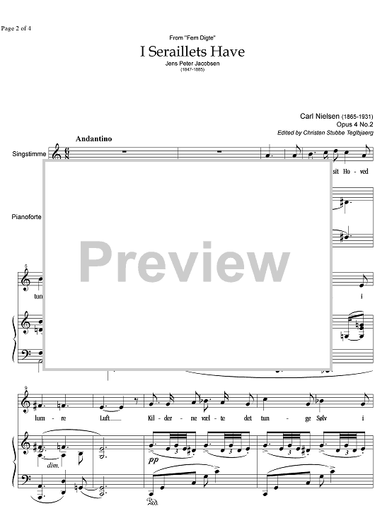 Digital Sheet Music for I Seraillets Have Op. 4 No. 2 by , Carl Nielsen scored for Mezzo-soprano or Baritone/Piano; id:340735