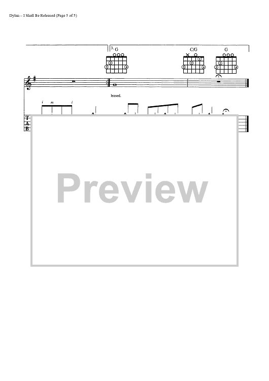Digital Sheet Music for I Shall Be Released by Bob Dylan scored for Guitar Tab/Vocal/Chords; id:445436