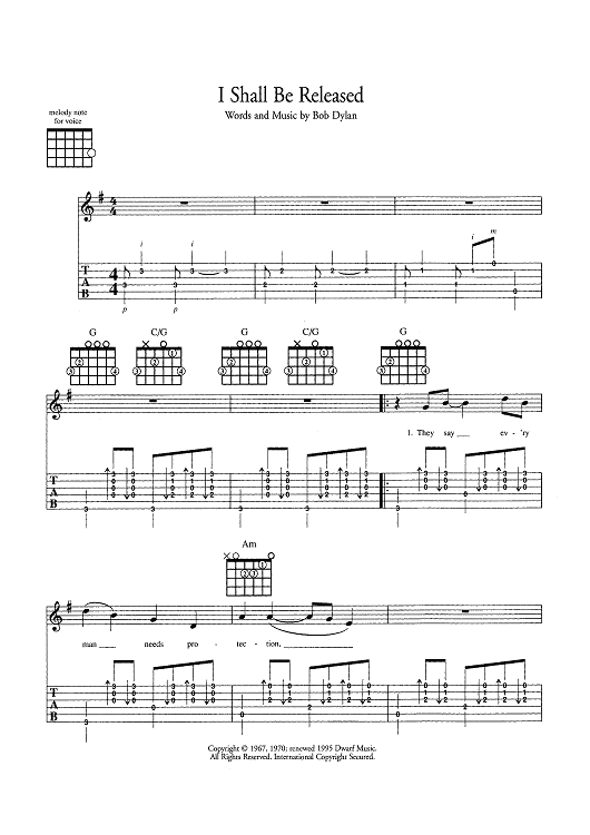 "I Shall Be Released" Sheet Music by Bob Dylan