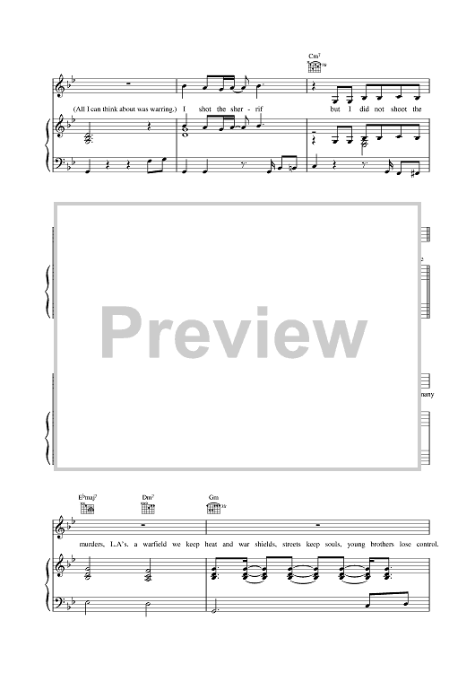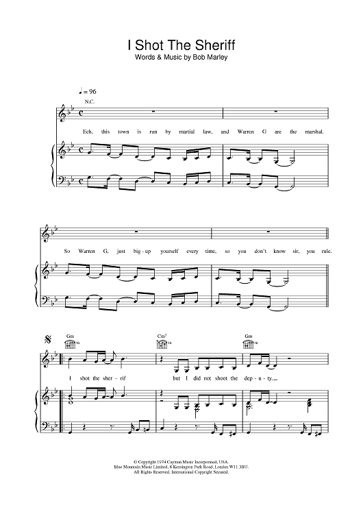 Digital Sheet Music for I Shot The Sherrif by Bob Marley, Warren G scored for Piano/Vocal/Chords; id:379621