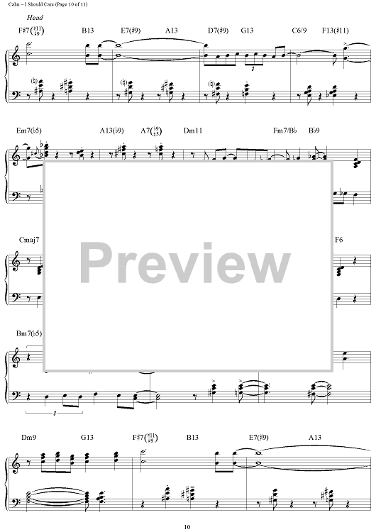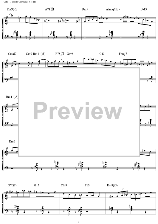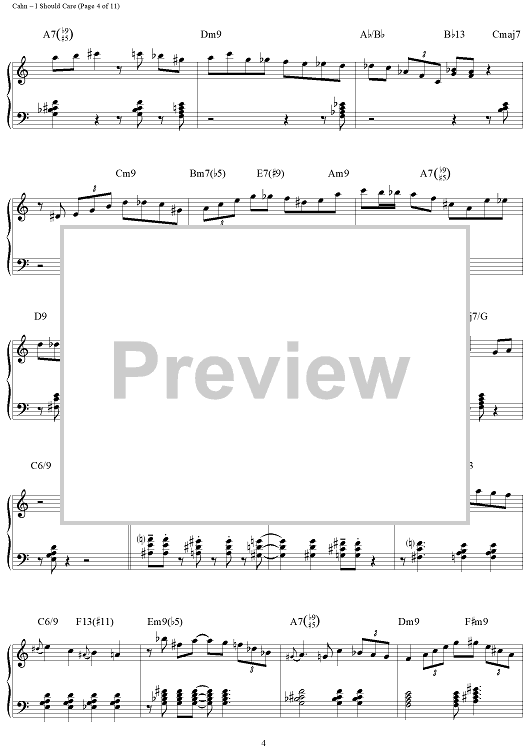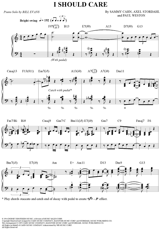 Digital Sheet Music for I Should Care by Sammy Cahn, Bill Evans, Axel Stordahl, Paul Weston scored for Piano Solo; id:119935