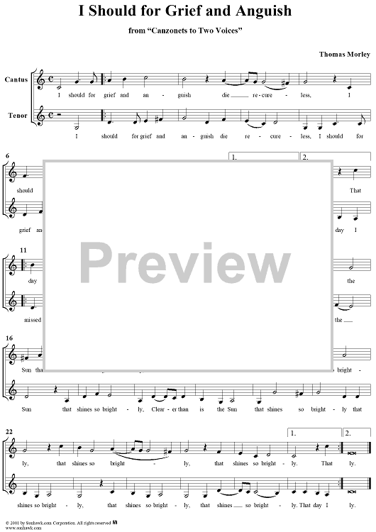 Digital Sheet Music for I Should for Grief and Anguish by Thomas Morley scored for Two-part Mixed Chorus; id:260140