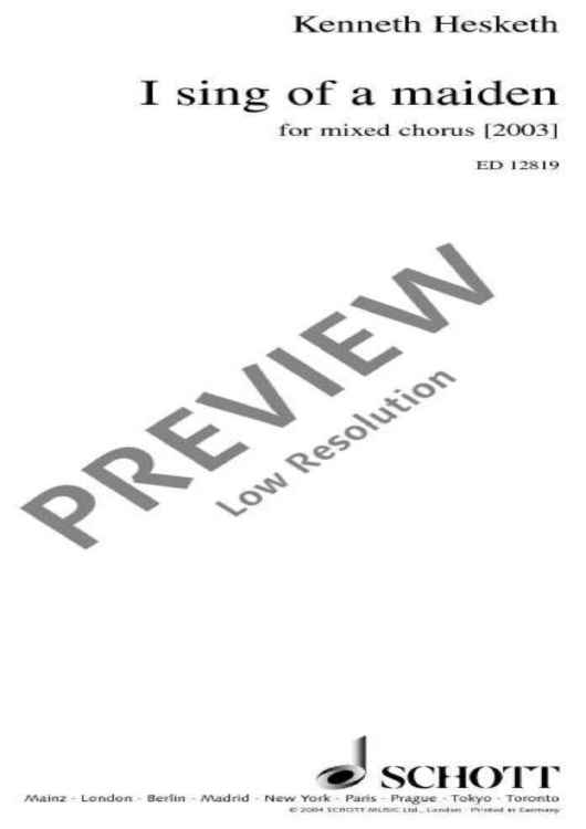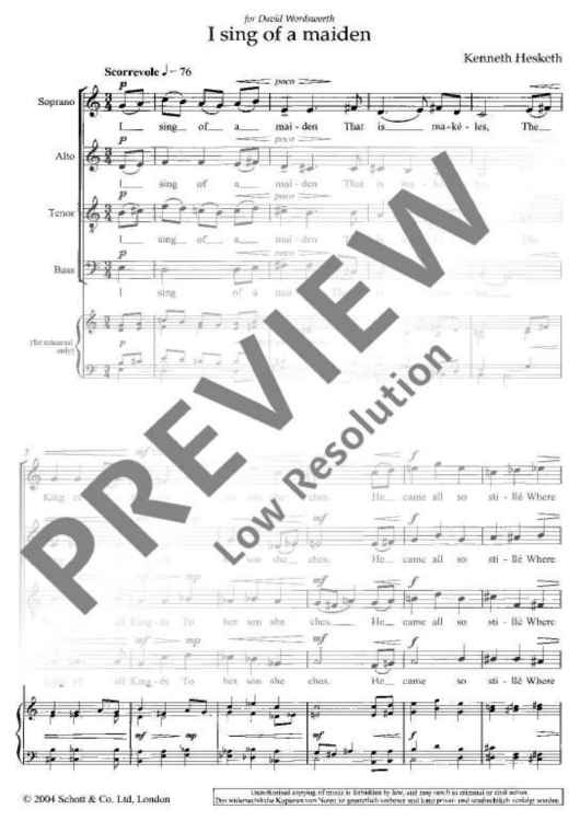 Digital Sheet Music for I sing of a maiden - Choral Score by Kenneth Hesketh scored for Mixed Choir (satb); id:477076