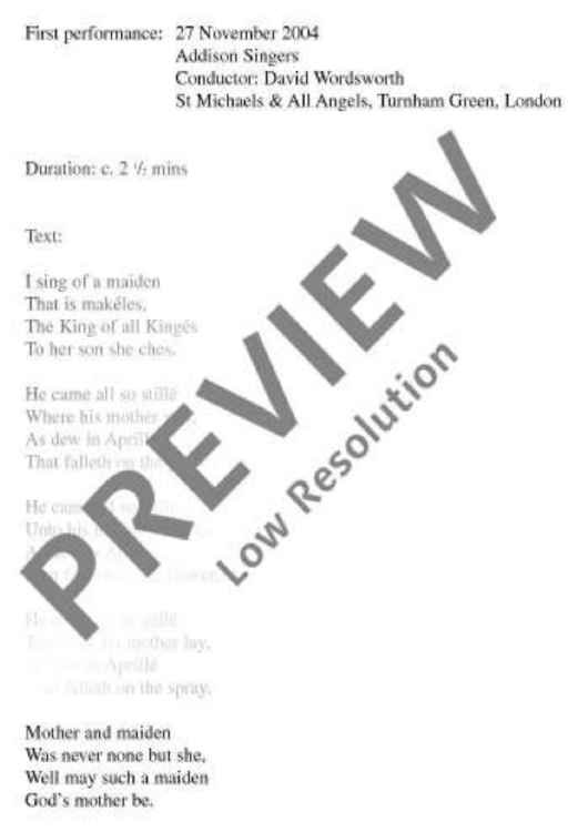 "I sing of a maiden - Choral Score" Sheet Music by Kenneth Hesketh