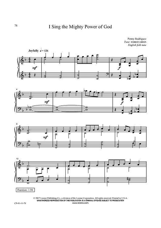 Digital Sheet Music for I Sing the Mighty Power of God by English Folk Song, Penny Rodriguez scored for Piano Solo; id:434410