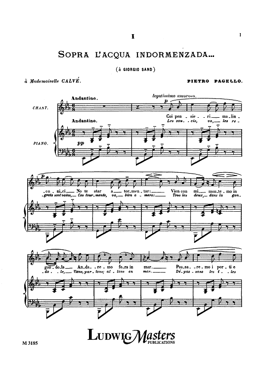 Digital Sheet Music for I - Sopra L'Acqua Indormenzada by , Reynaldo Hahn, Maurice Léna, Pietro Pagello scored for Piano/Vocal; id:444846