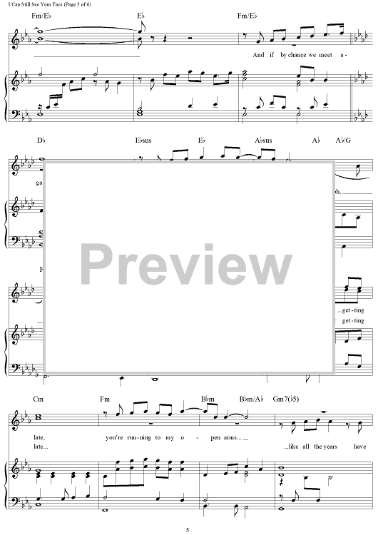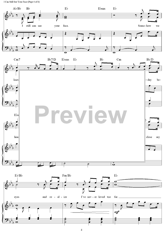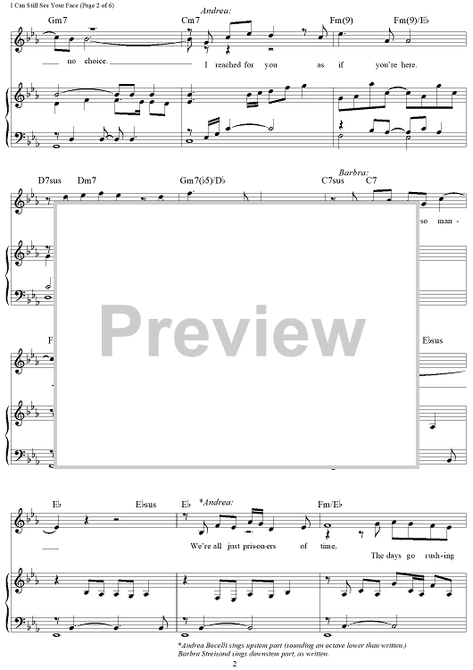 Digital Sheet Music for I Still Can See Your Face by Barbara Streisand, Andrea Bocelli, Charlie Midnight, Bernie Herms, Jay Landers scored for Piano/Vocal/Chords; id:444555