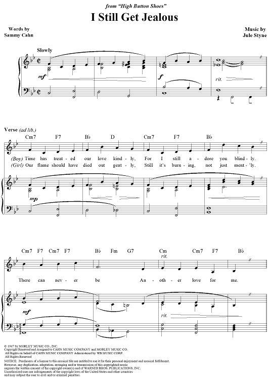Digital Sheet Music for I Still Get Jealous by Jule Styne, Sammy Cahn, The Three Suns, Harry James scored for Piano/Vocal/Chords; id:112789