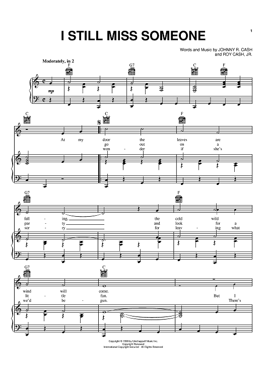 Digital Sheet Music for I Still Miss Someone by Johnny Cash, Roy Cash, Jr. scored for Piano/Vocal/Chords; id:367717