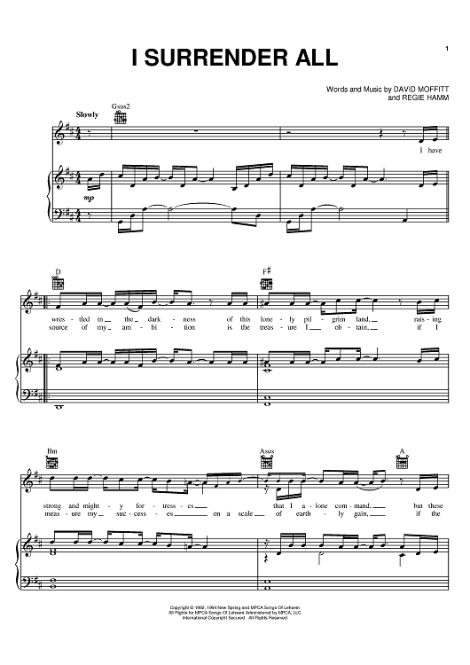 Digital Sheet Music for I Surrender All by Regie Hamm, David Moffitt, Clay Crosse scored for Piano/Vocal/Chords; id:371688