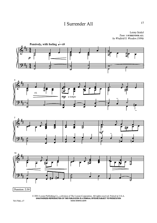 Digital Sheet Music for I Surrender All by Winfield S. Weeden, Lennie Seidel scored for Piano Solo; id:433691