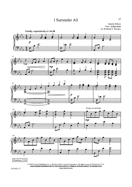 Digital Sheet Music for I Surrender All by Winfield S. Weeden, Sandra Eithun scored for Piano Solo; id:434044
