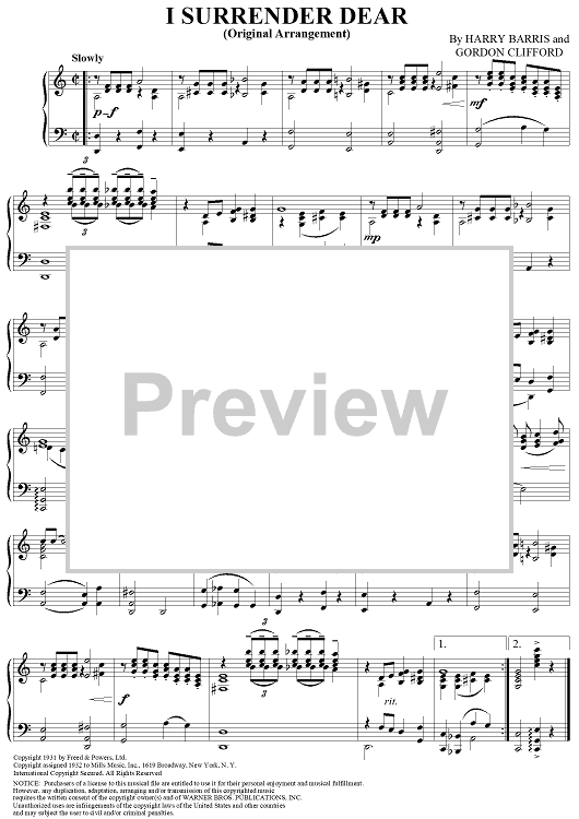 Digital Sheet Music for I Surrender Dear (Original Arrangement) by Fats Waller, Harry Barris, Gordon Clifford scored for Piano Solo; id:316975