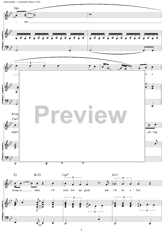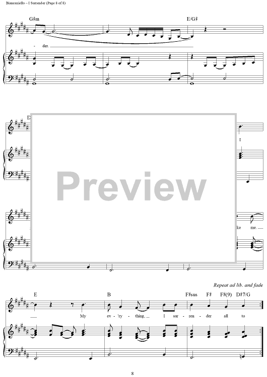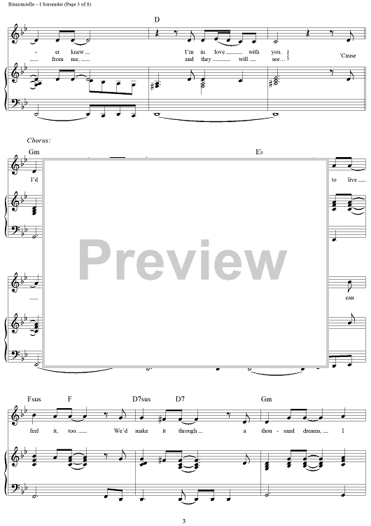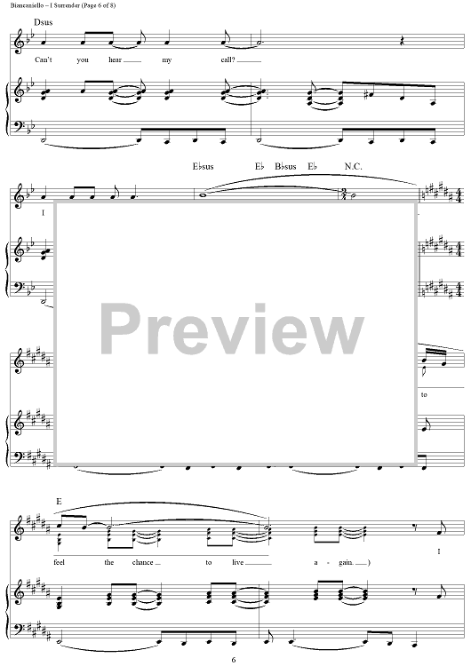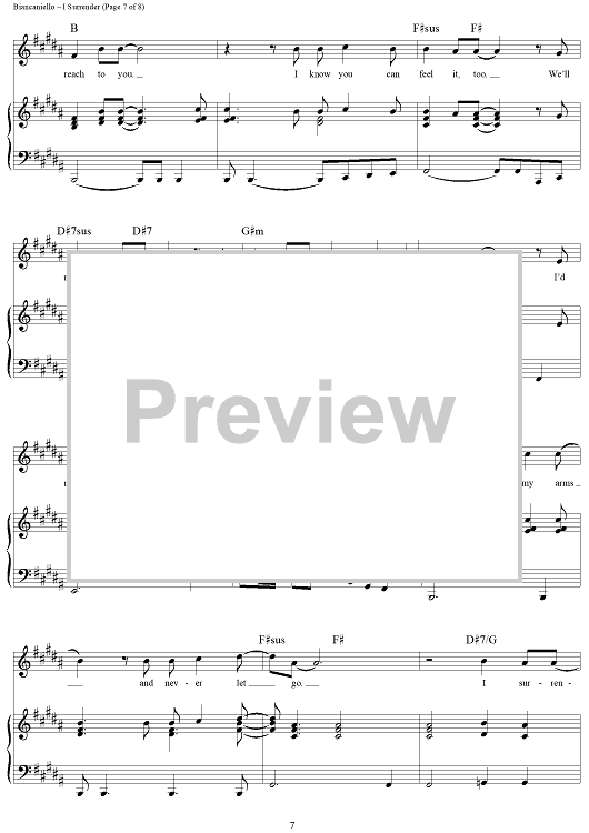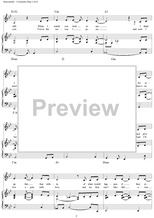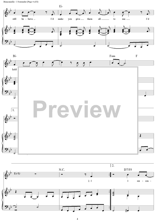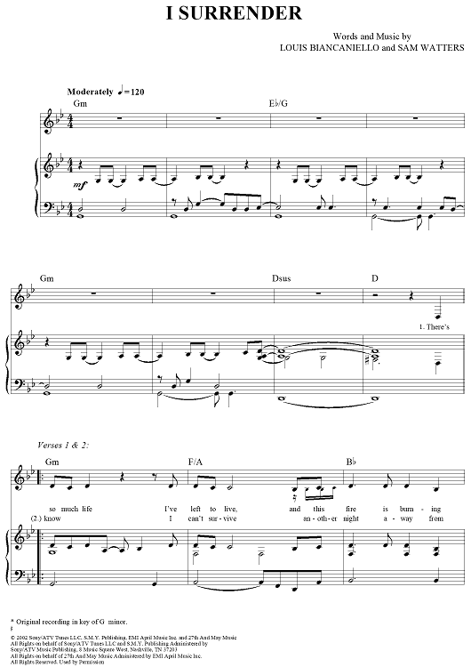 Digital Sheet Music for I Surrender by Celine Dion, Louis Biancaniello, Sam Watters scored for Piano/Vocal/Chords; id:290110