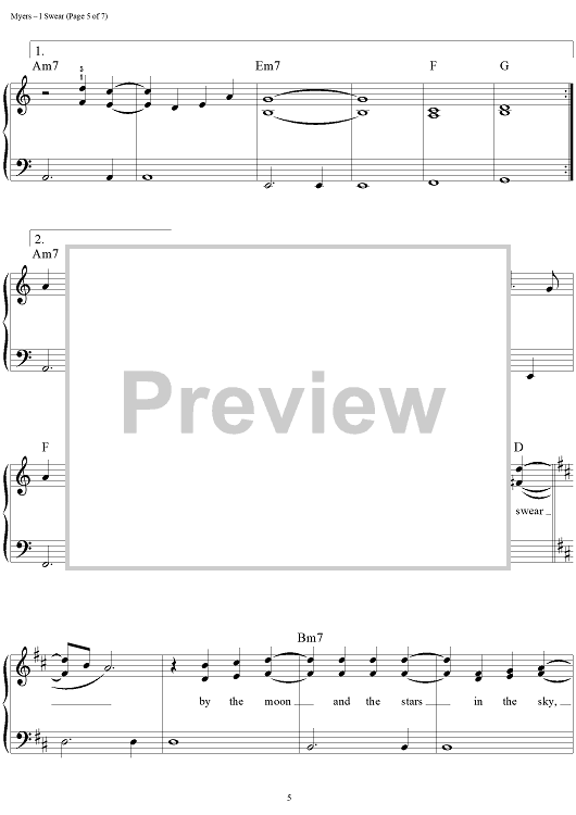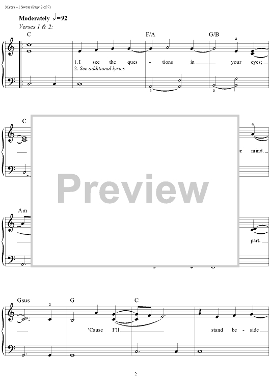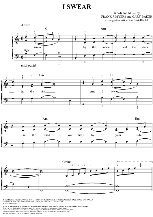 Digital Sheet Music for I Swear by Gary Baker, Frank Myers, Richard Bradley, All-4-One scored for Easy Piano; id:288353
