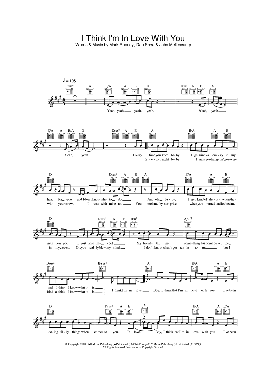 Digital Sheet Music for I Think I'm In Love With You by John Cougar Mellencamp, Jessica Simpson, Mark C. Rooney, Dan Shea scored for Lead Sheet; id:382885