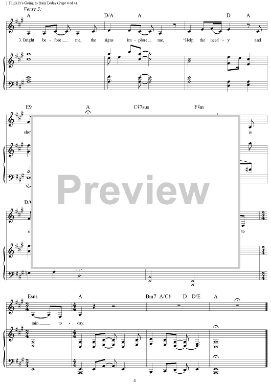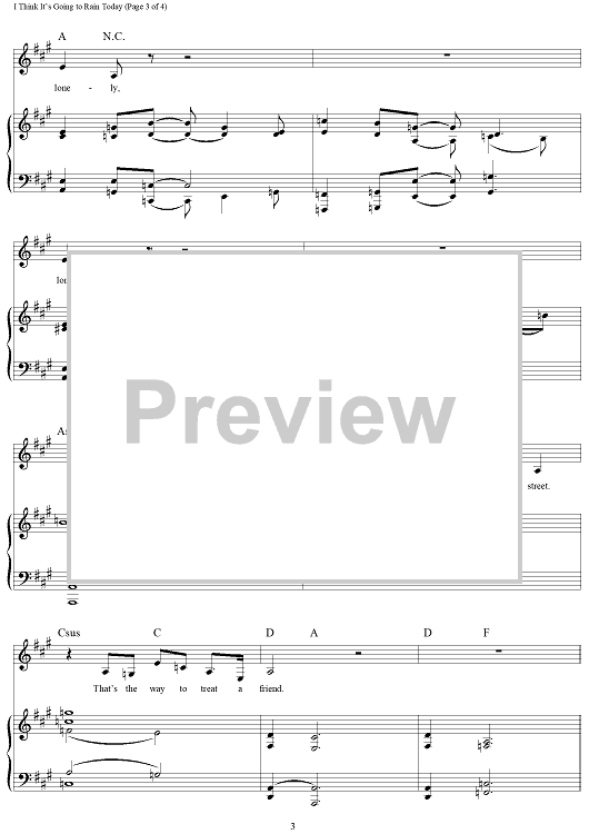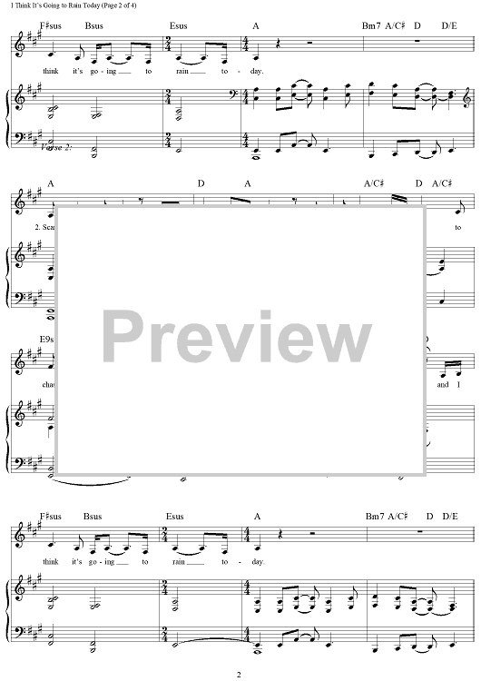 Digital Sheet Music for I Think It's Going to Rain Today by Randy Newman scored for Piano/Vocal/Chords; id:253393