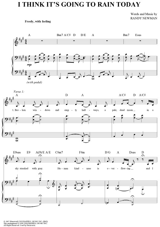 "I Think It's Going to Rain Today" Sheet Music by Randy Newman