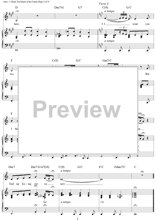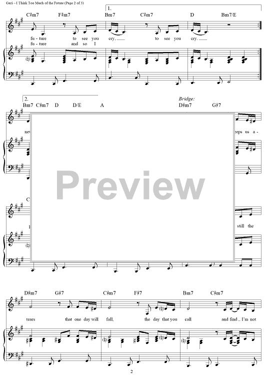 Digital Sheet Music for I Think Too Much of the Future by Brian Gari scored for Piano/Vocal/Chords; id:355052