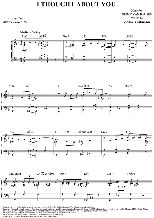 Digital Sheet Music for I Thought About You by Johnny Mercer, Jimmy Van Heusen, Brent Edstrom scored for Piano Solo; id:464337
