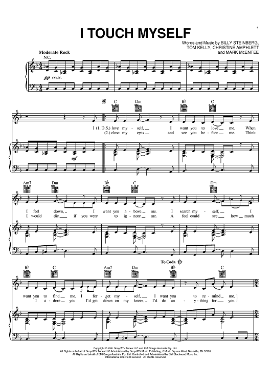 Digital Sheet Music for I Touch Myself by Billy Steinberg, Tom Kelly, Christine Amphlett, The Divinyls, Mark McEntee scored for Piano/Vocal/Chords; id:398169