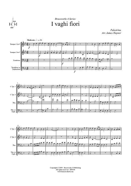 Digital Sheet Music for I Vaghi Fiori - Score by Giovanni Pierluigi da Palestrina, James Haynor scored for Brass Quartet; id:411220