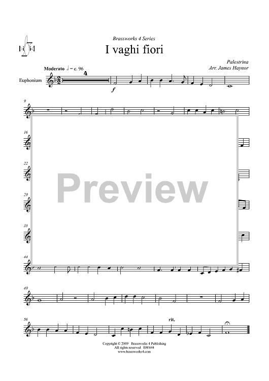 Digital Sheet Music for I Vaghi Fiori - Trombone or Euphonium by Giovanni Pierluigi da Palestrina, James Haynor scored for Brass Quartet; id:411227