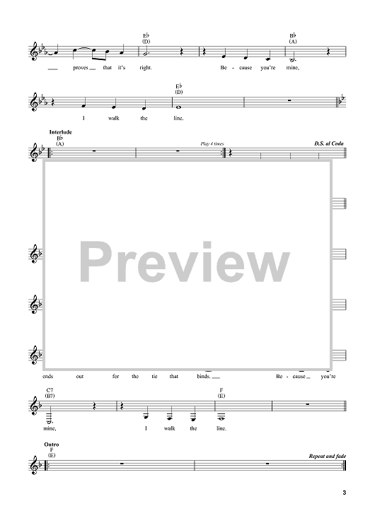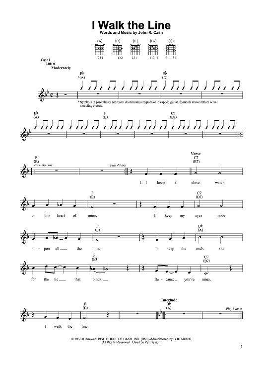 Digital Sheet Music for I Walk The Line by Johnny Cash scored for Lead Sheet with Guitar Grids; id:369531