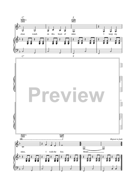 Digital Sheet Music for I Walk The Line by Johnny Cash scored for Piano/Vocal/Chords; id:378737