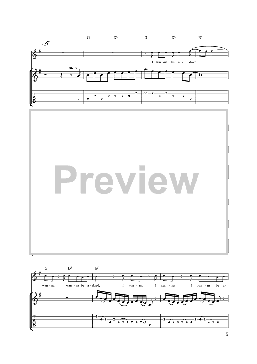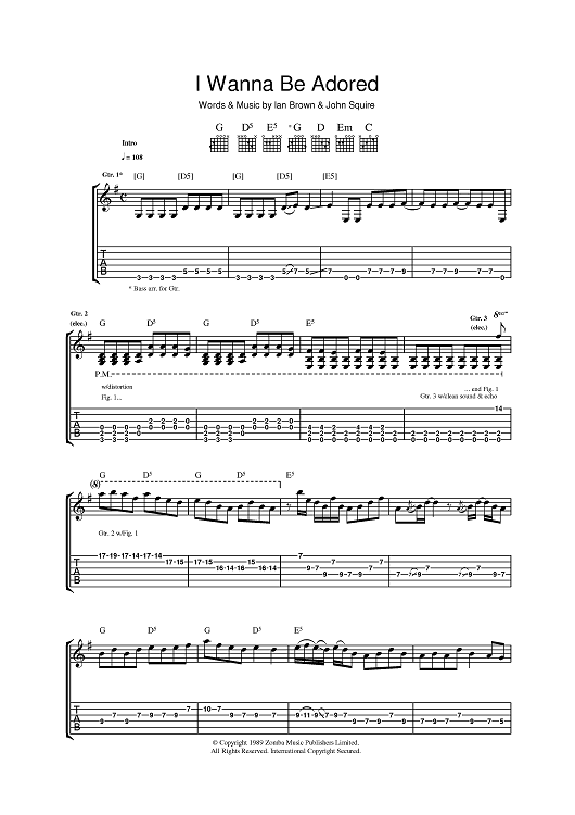 Digital Sheet Music for I Wanna Be Adored by Ian Brown, John Squire, The Stone Roses scored for Guitar Tab; id:396225