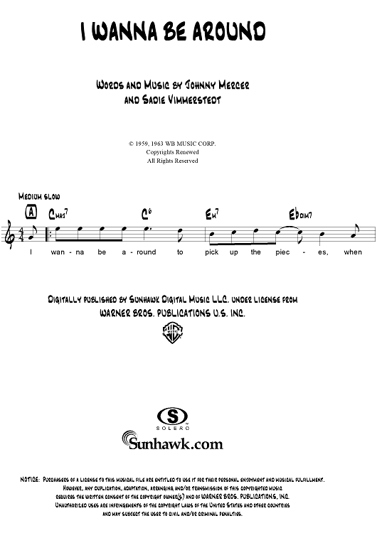 Digital Sheet Music for I Wanna Be Around by Sadie Vimmerstedt, Johnny Meercer scored for Lead Sheet; id:307554