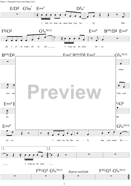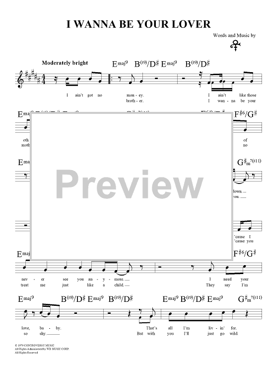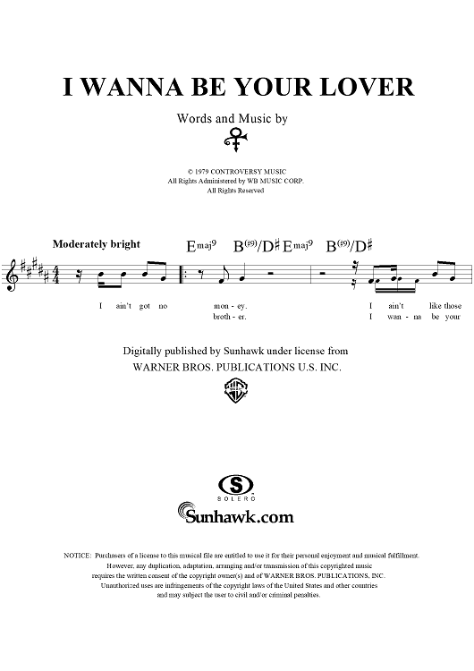 "I Wanna Be Your Lover" Sheet Music by Prince