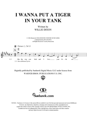 "I Wanna Put a Tiger in Your Tank" Sheet Music by Willie Dixon