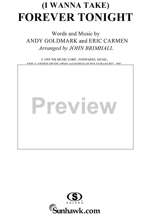 Digital Sheet Music for (I Wanna Take) Forever Tonight by Andy Goldmark, Peter Cetera, Crystal Bernard, Eric Carmen, John Brimhall scored for Easy Piano/Vocal; id:115847