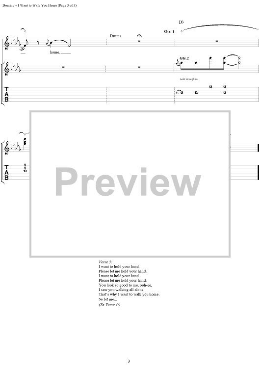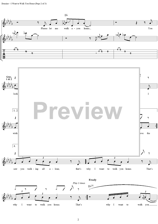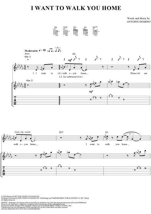 Digital Sheet Music for I Wanna Walk You Home by Kenn Chipkin, Fats Domino scored for Guitar Tab/Vocal; id:113559