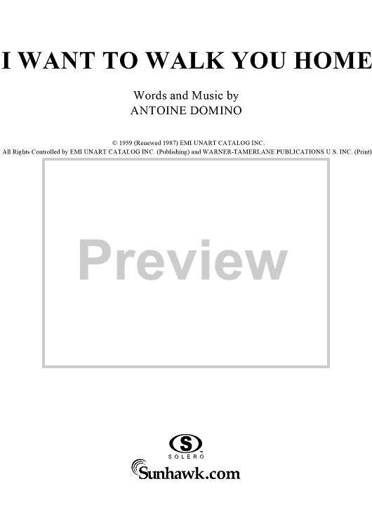 "I Wanna Walk You Home" Sheet Music by Fats Domino