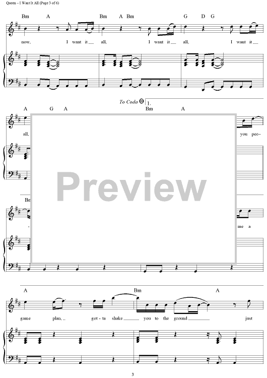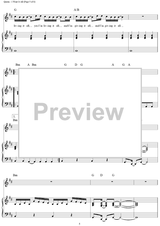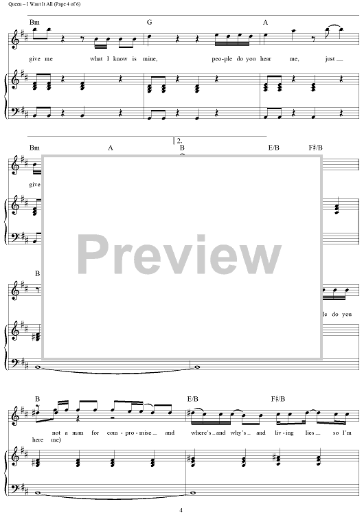 Digital Sheet Music for I Want It All by Queen scored for Piano/Vocal/Chords; id:366098