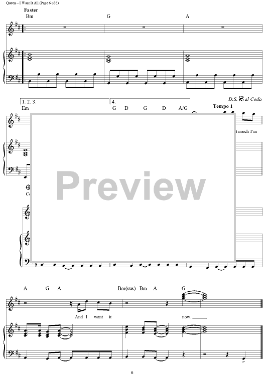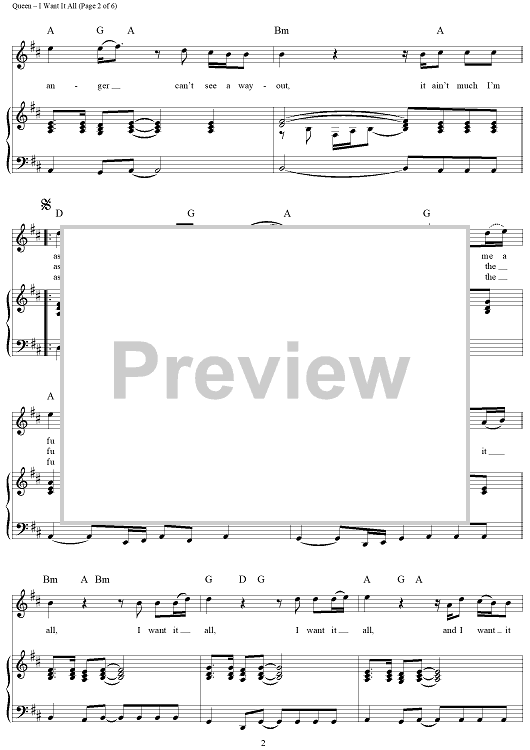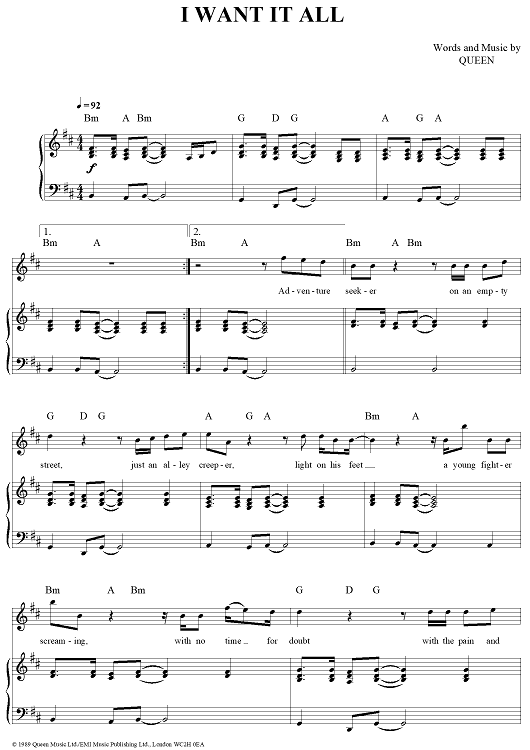 "I Want It All" Sheet Music by Queen