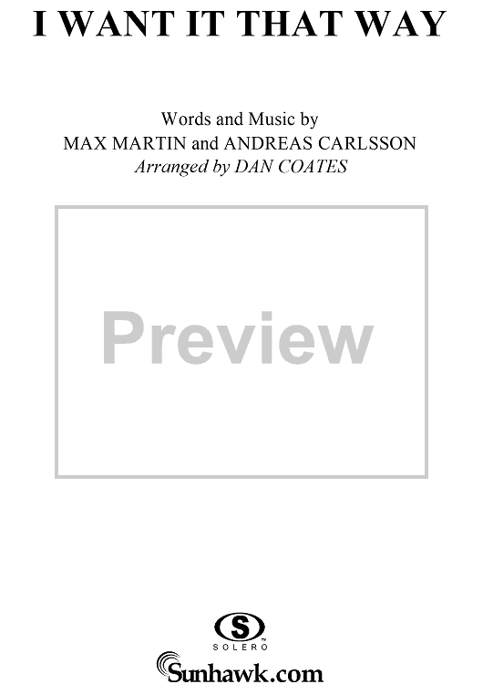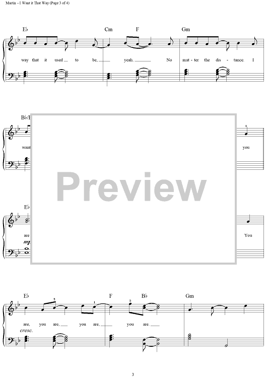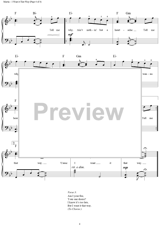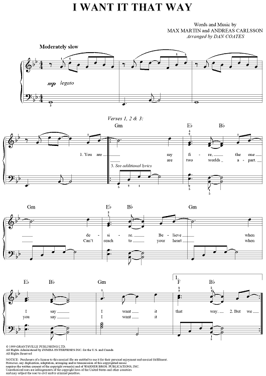 Digital Sheet Music for I Want It That Way by Max Martin, Andreas Carlsson, Backstreet Boys scored for Easy Piano/Vocal; id:234899