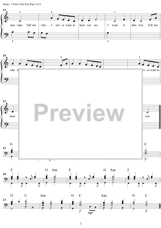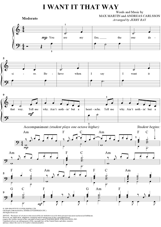 Digital Sheet Music for I Want It That Way by Jerry Ray, Max Martin, Andreas Carlsson, Backstreet Boys scored for Easy Piano/Vocal; id:286270