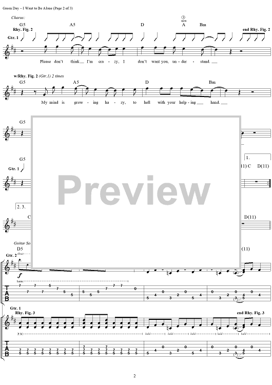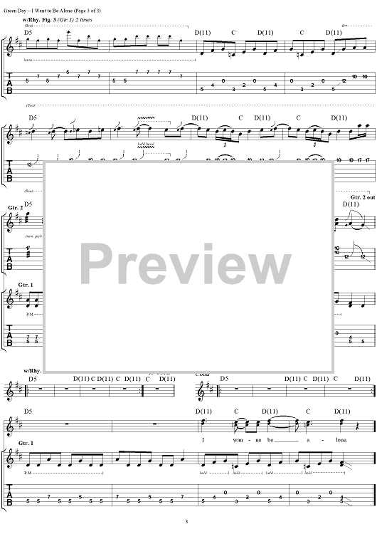 Digital Sheet Music for I Want To Be Alone by Billie Joe Armstrong, Green Day scored for Guitar Tab/Vocal; id:112981