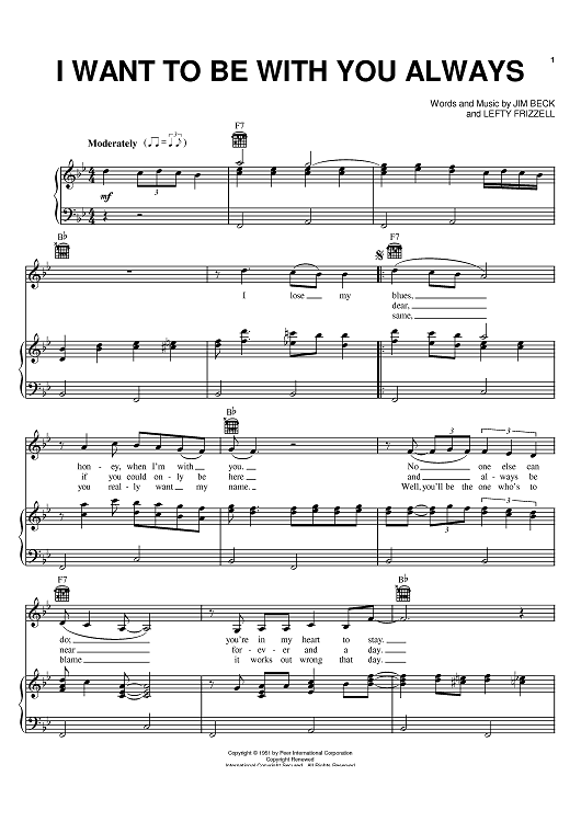 Digital Sheet Music for I Want To Be With You Always by Lefty Frizzell, Jim Beck scored for Piano/Vocal/Chords; id:388248